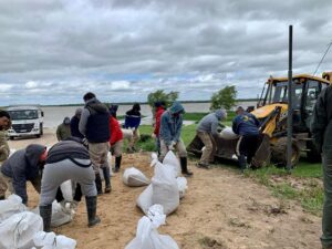 Los trabajos implican tareas de contención y de prevención, entre ellas mediante la entrega de bolsas de arena en zonas...