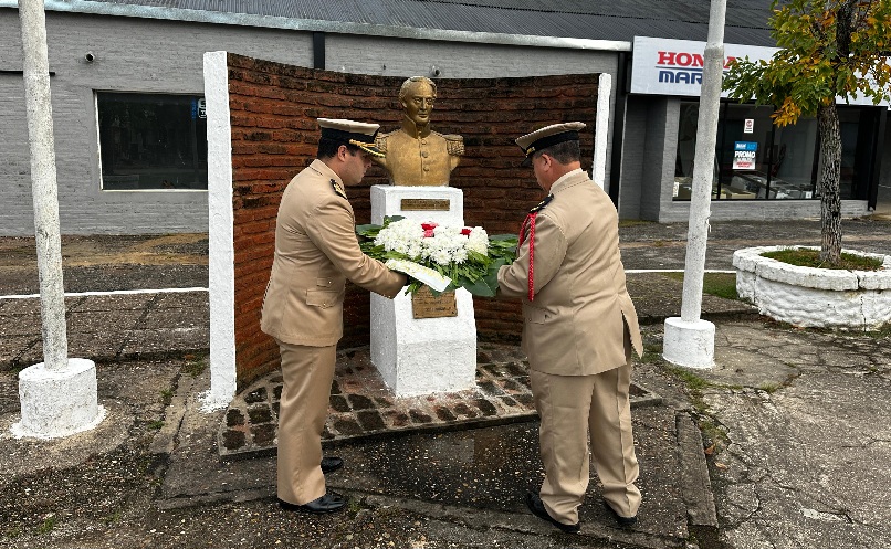 En este marco, se procedió a la colocación de una ofrenda floral al pie del busto que honra al citado prócer, emplazado en la plazoleta ubicada en el acceso a la zona portuaria de la ciudad. Como cierre, se entonó la Marcha de la Prefectura Naval Argentina.