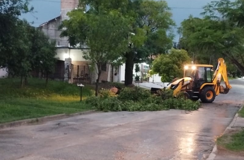 En las calles Torres Vilches, Los Pinos y Ñandubay, se observan árboles caídos sobre el asfalto. Se encuentra personal municipal trabajando para retirarlos para posteriormente normalizar el tránsito.