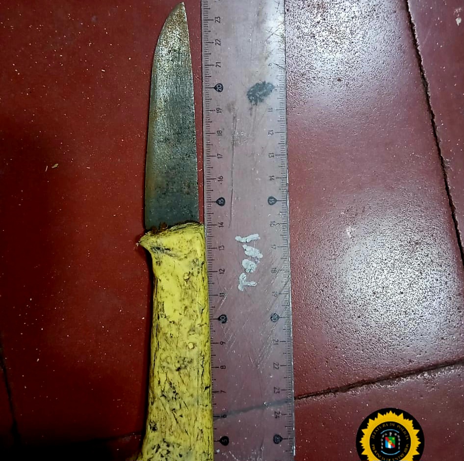Según fuentes policiales, el joven intentó darse a la fuga blandiendo un arma blanca, pero fue reducido en el lugar y trasladado al hospital local para recibir atención médica debido a las lesiones sufridas durante el forcejeo.