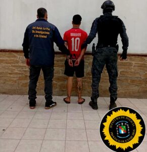La Jefatura Departamental La Paz informa que, tras una exhaustiva investigación y trabajo conjunto entre las divisiones Operaciones, Investigaciones e Inteligencia Criminal y Policía Científica, se logró la detención de un ciudadano mayor de edad (25 años) en relación con un hecho ocurrido el 11 de octubre de 2025.
