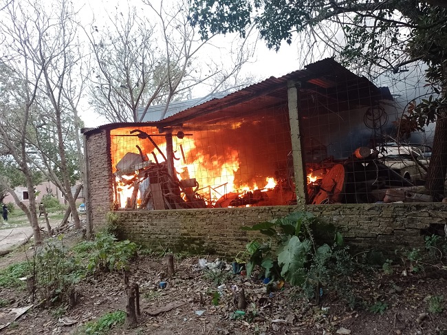 Al llegar al lugar, se constató que el taller mecánico ubicado en España, perteneciente a un ciudadano de 81 años de edad, se encontraba en llamas.