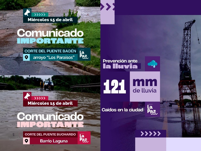 Las interrupciones afectan al puente badén sobre el arroyo Los Paraísos y al Puente Buchardo, ubicado en barrio Laguna. Desde el área municipal solicitaron a los vecinos respetar la señalización instalada y circular con precaución utilizando vías alternativas hasta que mejoren las condiciones.